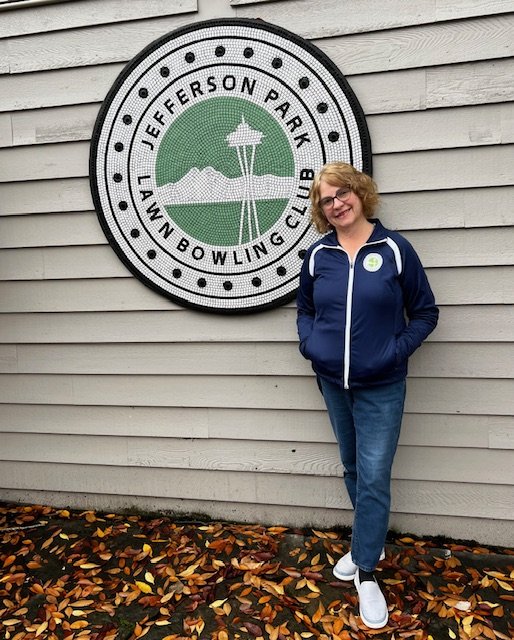 Majken (pronounced Myken) has been a member since 2022. Once she started lawn bowling, it quickly became a favorite passion and she loves to be an ambassador for lawn bowling and the JPLBC wherever she goes. Her other passion is mosaic art which takes her on all kinds of creative journeys including teaching mosaic classes. Majken lives near Greenlake with her husband, two cats and tiny dog. She has three adult kids and one super cute grandson.